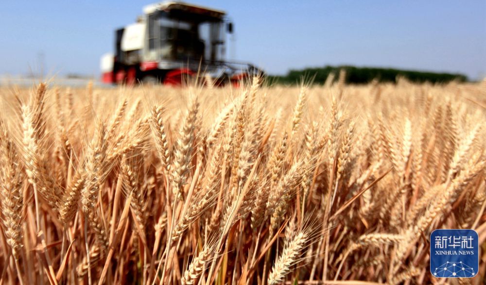 山东省临沂市平邑县农民驾驶收割机在田间收获小麦。新华社发(武纪全 摄)