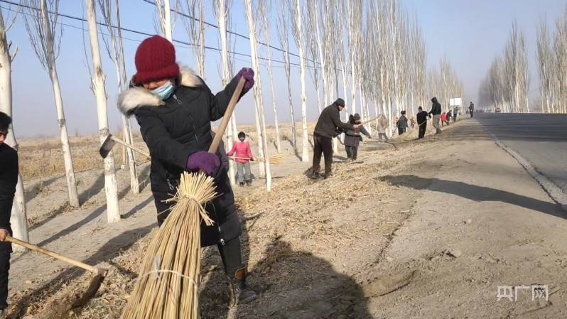 焉耆县永宁镇辖区村庄道路两旁卫生整治(央广网发 兰雪 摄)
