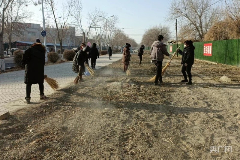 焉耆县永宁镇永兴社区环境卫生整治(央广网发 马英 摄)