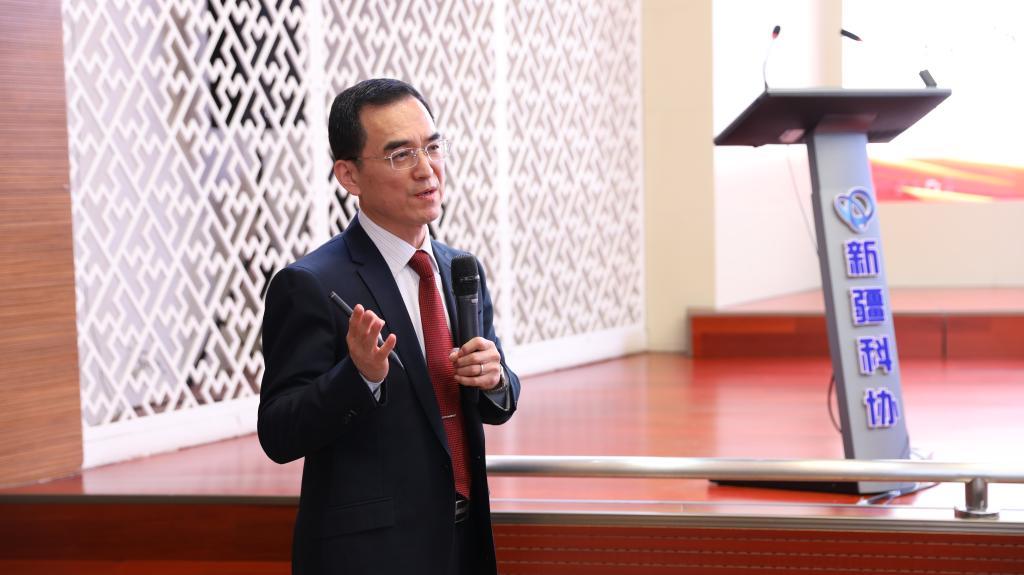 中科院新疆理化技术研究所所长、新疆物理学会理事长潘世烈研究员以《教育、科技、人才三位一体共同支撑高质量发展》为题,从“实施科教兴国战略、强化现代化建设人才支撑”“实施科技兴疆、人才强区、创新驱动发展战略”等四个层面深刻分析和阐释了我国、我区强化科技创新支撑引领作用的重要性以及我区科协系统和科研机构作为战略科技力量主力军在新征程上的职责使命和坐标定位。