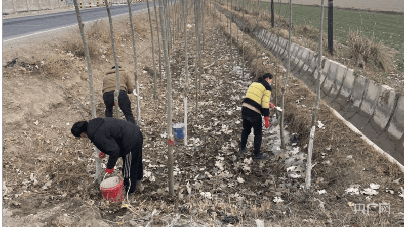 志愿者给树木涂白(央广网发 焉耆县委宣传部 供图)
