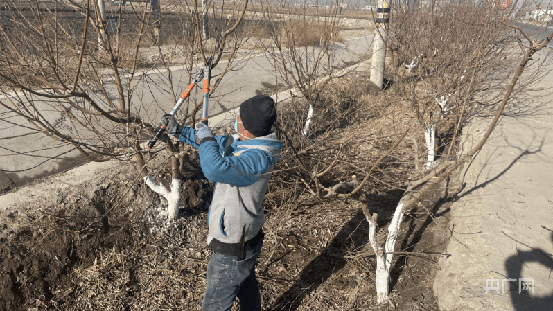 工作人员修剪树枝(央广网发 焉耆县委宣传部 供图)