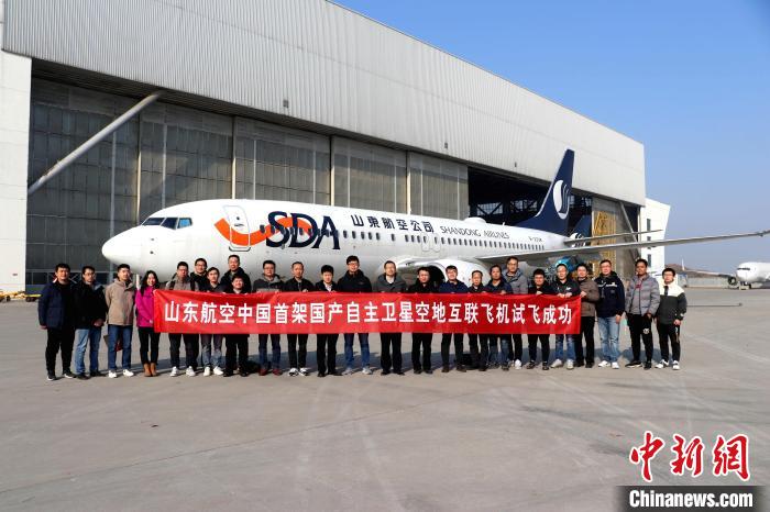 中国首架国产自主高通量机载宽带卫星空地互联飞机试飞成功。 山东航空 供图