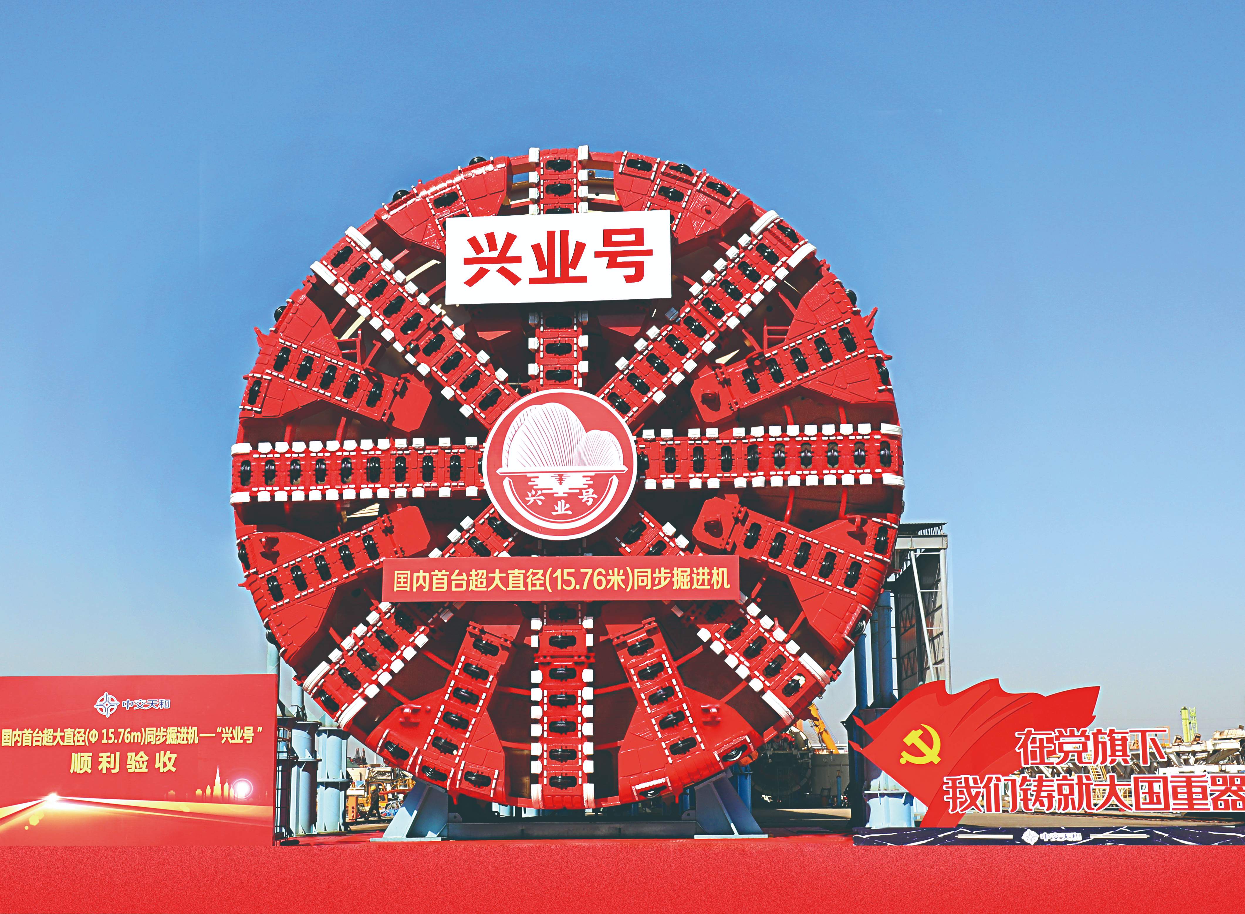 在刚刚过去的2023年元旦假期,珠海兴业快线隧道工程现场,一台重4500吨、超5层楼高的超大直径盾构机正奋勇掘进,随着刀头转动,隧道一米一米向前推进,管片一片一片拼装。这台盾构机就是由中交天和自主研制的全球首台超大直径同步掘进机“兴业号”,它首次实现在掘进过程中同步完成拼装管片。