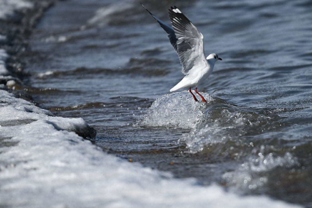 一只棕头鸥在青海湖展翅。图片来源:新华社记者 张龙 摄