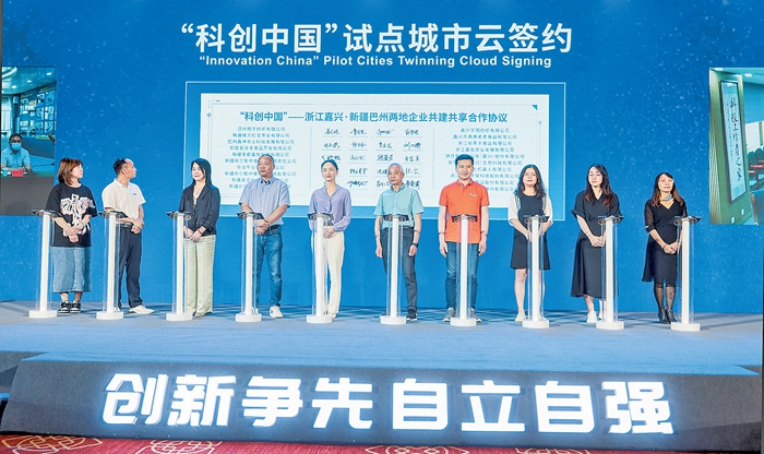 巴州与浙江省嘉兴市的20家企业通过在线形式举行“科创中国”试点城市云签约仪式(摄于6月10日)。
