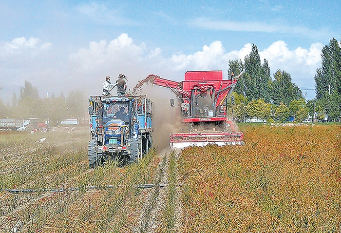 焉耆回族自治县板椒机械化收割现场(摄于9月18日)。