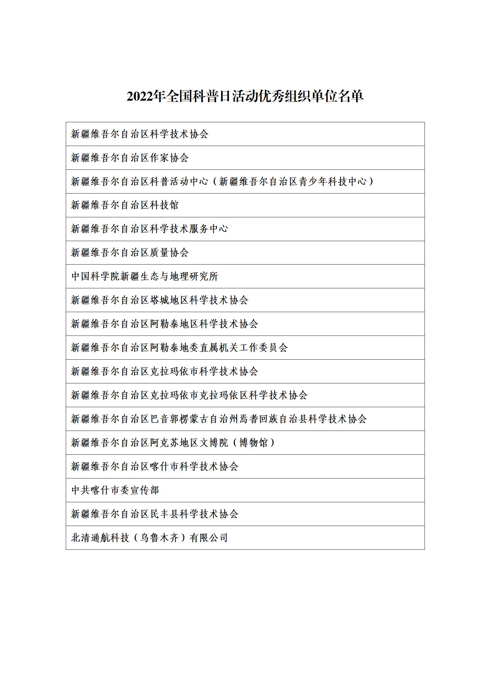 近日,中国科协发布《关于对2022年全国科普日有关组织单位和活动予以表扬的通知》,自治区科协、自治区质量协会、阿勒泰地区科协等18个单位被评为2022年全国科普日优秀组织单位,“全国科普日新疆系列活动主场活动”、“大科学小课堂——听科学家讲科学故事”、“前‘石’今生——可可托海矿物科普”等22个活动被评为2022年全国科普日优秀活动。