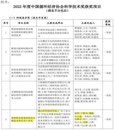 中国循环经济协会科学技术奖是经国家科技部批准,在国家科技奖励主管部门注册,具备直接提名国家科学技术奖的资格,在行业领域内具有高认可度。2022年度中国循环经济协会科学技术奖共评选出一等奖8项,二等奖20项,三等奖25项。