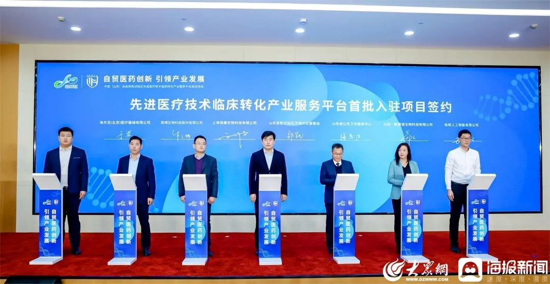 活动现场,山东省商务厅(自贸办)、省卫健委、省科技厅、省工信厅、省药监局、省公共卫生临床中心负责同志和济南市领导同志共同启动了“先进医疗技术临床转化产业服务平台”。济南片区管委会、山东省公共卫生临床中心代表中国(山东)自由贸易试验区先进医疗技术临床转化产业服务平台与第一批入驻平台项目签约,香港毅柏视网膜影响慢病评估体系临床应用项目、上海韬睿再生细胞处理系统临床应用项目等22个国内外高端创新资源入驻平台,将通过先进医疗技术临床转化产业服务平台创新赋能和成果转化,在更大层次、更宽领域实现项目高质量跨越发展。