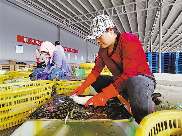 良田镇金星村汉白玉萝卜分拣加工车间。