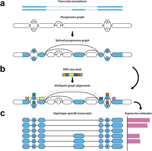 利用新的开源工具,研究人员可获取个体RNA的拼接片段,绘制它们在泛基因组上的排列位置,确定数据属于哪种单倍型,并分析基因表达。