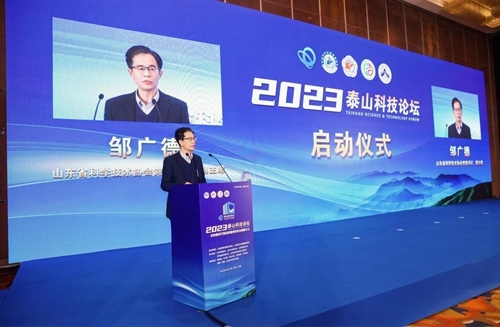 邹广德在致辞中指出,泰山科技论坛是山东省科协精心打造的高端学术交流品牌。2023年是泰山科技论坛全面提质升级的一年,将进一步提升论坛质量和水平,聚焦黄河流域生态保护和高质量发展、健康强省、乡村振兴、海洋强省等重大战略,在新一代信息技术、大健康、人工智能、新能源、新材料、高端装备等重点领域精准发力,深化与全国学会、大院大所、省直相关部门、省级产业链链主企业的合作,多渠道邀请两院院士、知名专家、学科权威、企业家到山东开展学术交流和项目合作,更好地汇聚高端智力,凝聚科技力量,为新时代社会主义现代化强省建设提供科技支撑。