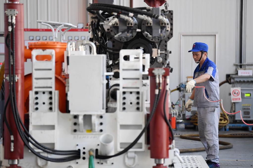 2022年6月17日,在陕西太合智能钻探有限公司,工人准备对智能定向钻机进行性能调试。新华社记者 李一博 摄