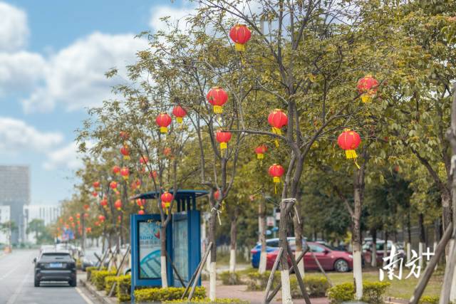 岁末年初,顺德高新区主干道处处张灯结彩,年味十足。