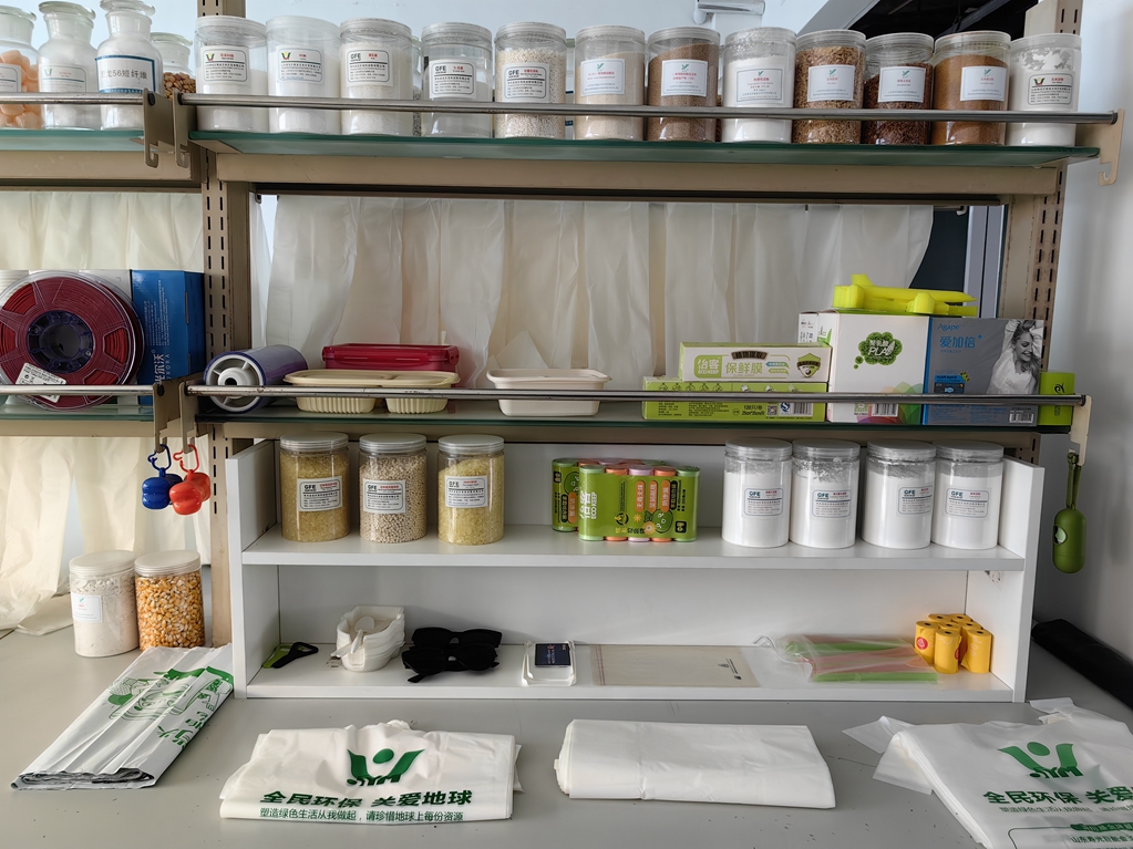 据金玉米公司研发部副主任孙敬善介绍,他们拓展玉米加工产业链条,向乳酸、丙交酯、聚乳酸、淀粉基热塑性复合材料等生物基新材料产品延伸,可进一步生产可降解垃圾袋、手提袋、餐具和纺织品等。