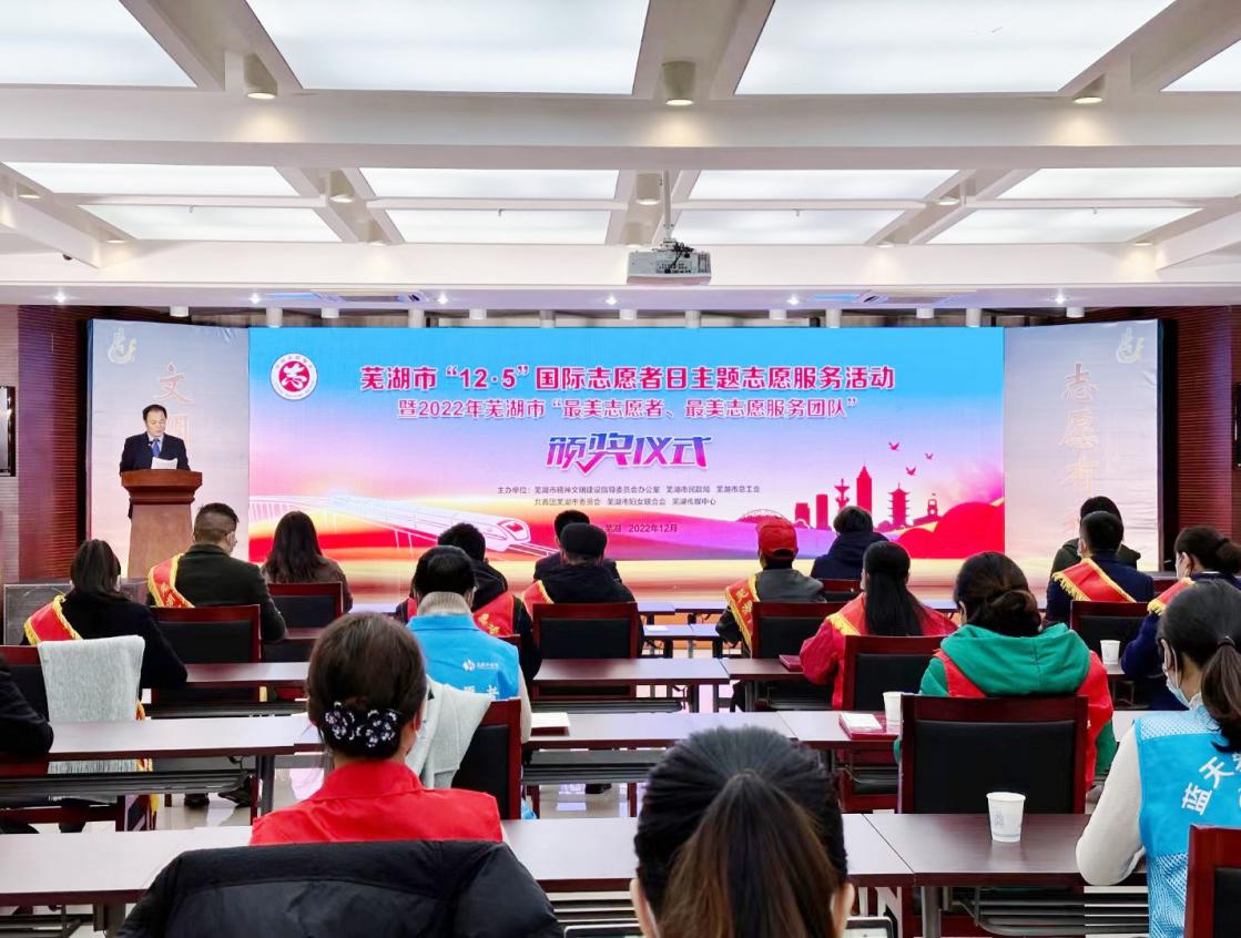 12月5日是第37个国际志愿者日,为积极培育和践行社会主义核心价值观,进一步弘扬“奉献、友爱、互助、进步”的志愿服务精神,营造人人关注志愿者、人人尊重志愿者、人人争做志愿者的良好社会氛围,由芜湖市精神文明建设指导委员会办公室、芜湖市民政局、芜湖市总工会、共青团芜湖市委员会、芜湖市妇女联合会、芜湖传媒中心主办的芜湖市“12·5”国际志愿者日主题志愿服务活动暨2022年芜湖市“最美志愿者、最美志愿服务团队”颁奖仪式在芜湖传媒中心举办。芜湖科技馆科普大篷车志愿服务队被授予“芜湖市最美志愿服务组织(团队)”称号。