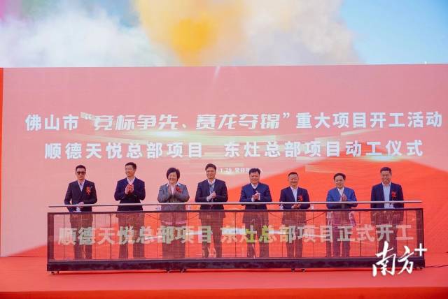 抢先机,拼经济,顺德击鼓催征。1月29日,佛山市举行“竞标争先、赛龙夺锦”重大项目开工活动,顺德区在天悦总部、东灶总部项目地块设分会场。顺德一季度20个重大项目开工,总投资约196.34亿元,涵盖智能制造、高端装备、食品加工和交通基础设施等,实现重大项目建设“开门红”。