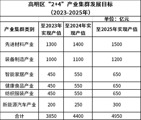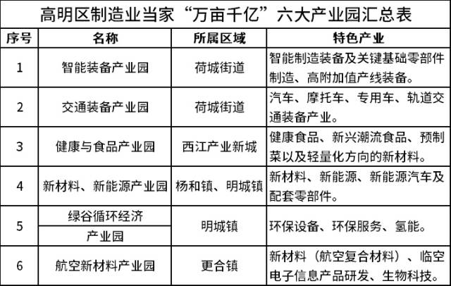 会上披露的《佛山市高明区制造业当家“万千工程”三年行动方案(2023—2025年)》(征求意见稿)显示,高明将立足“山水城市中工业强、工业城市中生态好”的区域特质,聚焦制造业、大抓制造业,高起点、高标准谋划建设6个制造业“万亩千亿”主题产业园;围绕“2+4+X”产业发展定位,全力推动产业链供应链优化升级,建成若干个千亿产业集群,培育百亿企业方阵,构建以制造业为主导的现代化产业体系,增强高明区全域高质量发展的实力和底气。