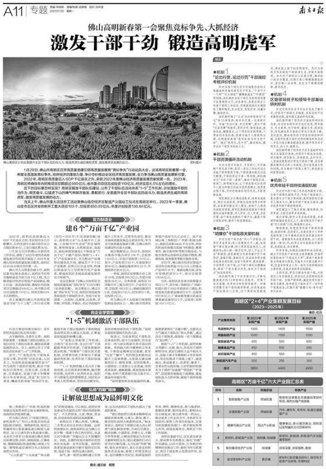 定下的目标要怎样实现?高明区瞄准干部队伍建设,公布了干部队伍活化体系“1+5”工作机制,计划激励干部担当作为、艰苦奋斗,以猛虎下山的精气神踔厉奋发、勇毅前行,全面提升全区干部队伍的战斗力,锻造虎虎生威的高明虎军,激发高质量发展的动力。