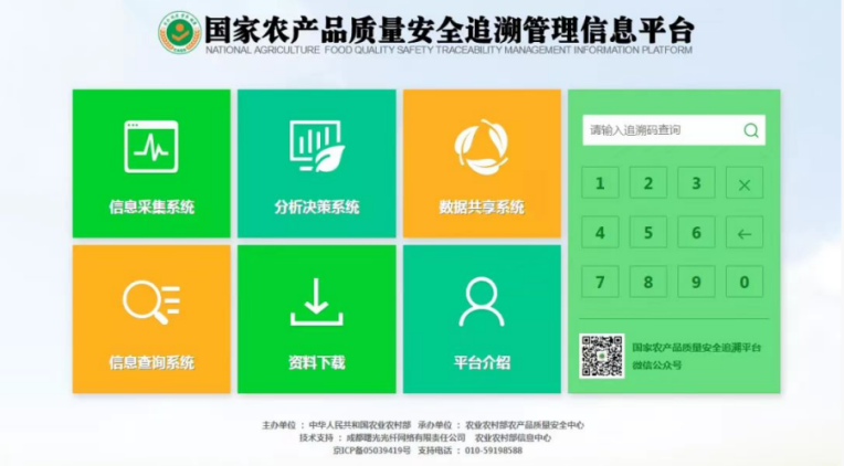 “国家农产品质量安全追溯管理信息平台”已在全国范围内推广应用,为监管者、生产经营者、消费者提供了“从田间到餐桌”的农产品追溯条件。同时,国家追溯平台已积极推进与省级农产品质量安全追溯平台和农垦行业平台对接,促进“统一平台入口、统一主体登录管理、统一追溯标识、减少重复操作”,建立健全追溯信息共享机制,生产主体通过追溯平台获取“追溯码”。