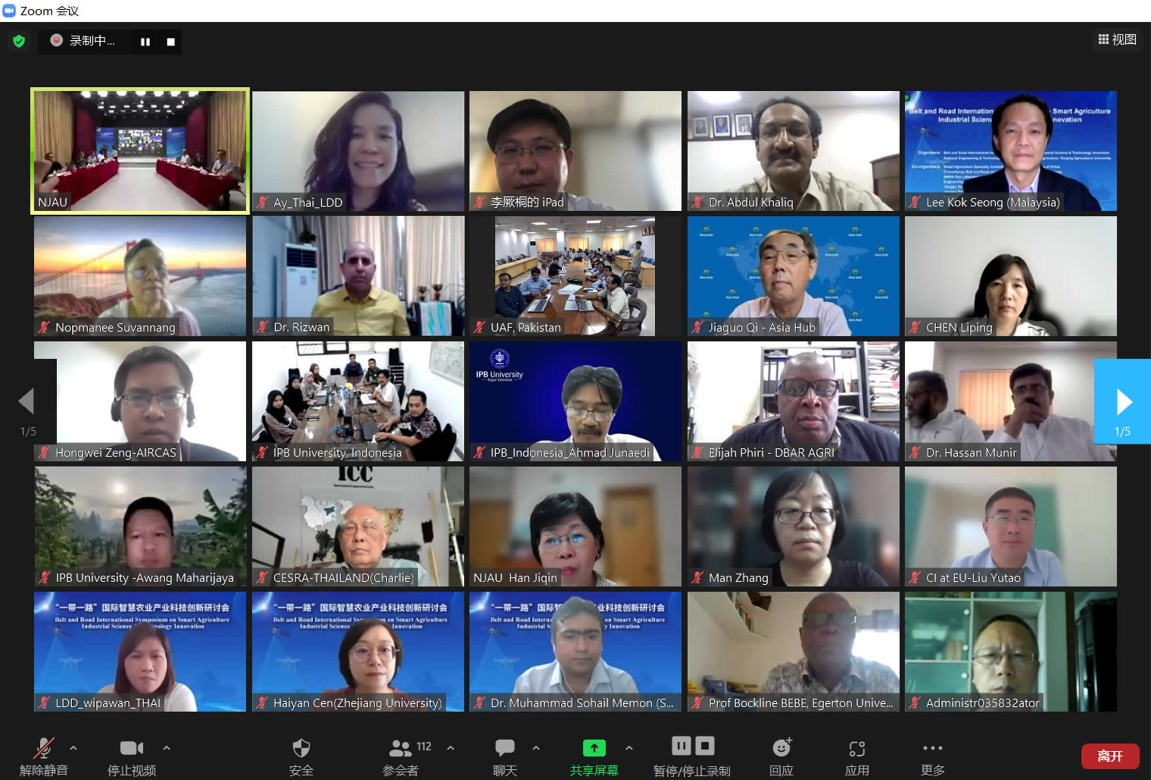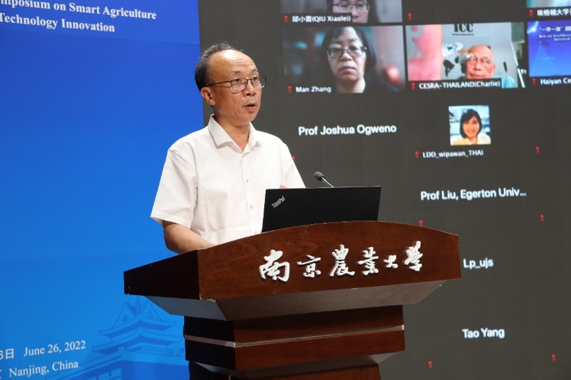6月26日,“一带一路”国际智慧农业产业科技创新研讨会在南农举行。会议由我校牵头的“一带一路”国际智慧农业产业科技创新院(以下简称创新院)和国家信息农业工程技术中心主办,中国作物学会智慧农业专业委员会、“科创中国”国际智慧农业产业科技服务团等联合承办。会议采用线上线下相结合的形式举行,在南京农业大学设主会场,在巴基斯坦费萨尔巴德农业大学和印尼茂物农业大学等创新院国际参与单位设立分会场。巴基斯坦费萨尔巴德农业大学校长Iqrar Ahmad Khan教授、巴基斯坦信德农业大学校长Fateh Muhammad Marri教授、肯尼亚丘卡大学代理校长Dorcas Isutsa教授、肯尼亚埃格顿大学副校长Bockline Omedo Bebe教授等出席会议,来自中国、巴基斯坦、印度尼西亚、泰国、赞比亚、肯尼亚等15个国家的高校与企业代表近130人参加了会议。