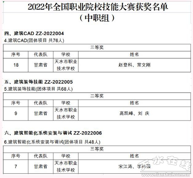 天水市职业技术学校在2022年全国职业院校技能大赛中荣获优异成绩