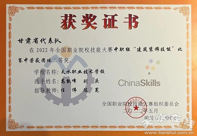 三、天水市职业技术学校“建筑装饰技能”赛项荣获国赛二等奖