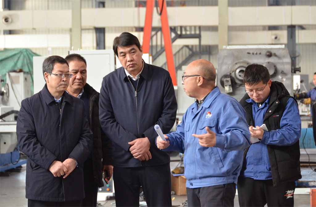 包俊宗一行在实地调研时,不时驻足观看公司特色产品,详细了解了企业科技创新等情况。调研中,蒋俊向包俊宗一行重点介绍了公司自主研制的五轴联动数控机床、数控缠绕机床、专用机床等高端产品的科技创新和市场应用情况。