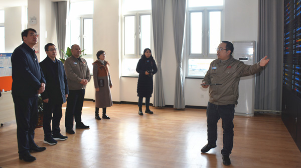 包俊宗一行先后参观了公司数字展厅、生产处MES智能终端大屏、能源管理中心智慧能源信息大屏和三分厂生产现场。