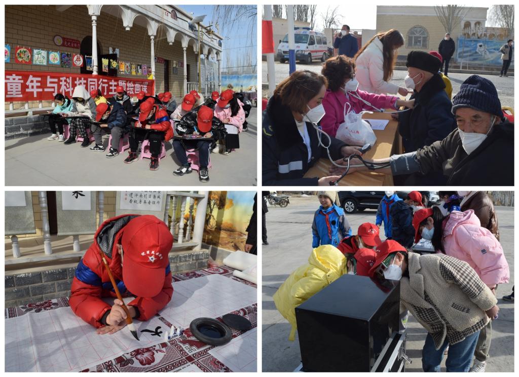 在群巴克镇恰先拜村科普馆中,开展了内容丰富的“童年与科技同行”主题绘画、“科技之冬”义诊、科普大篷车联盟等活动