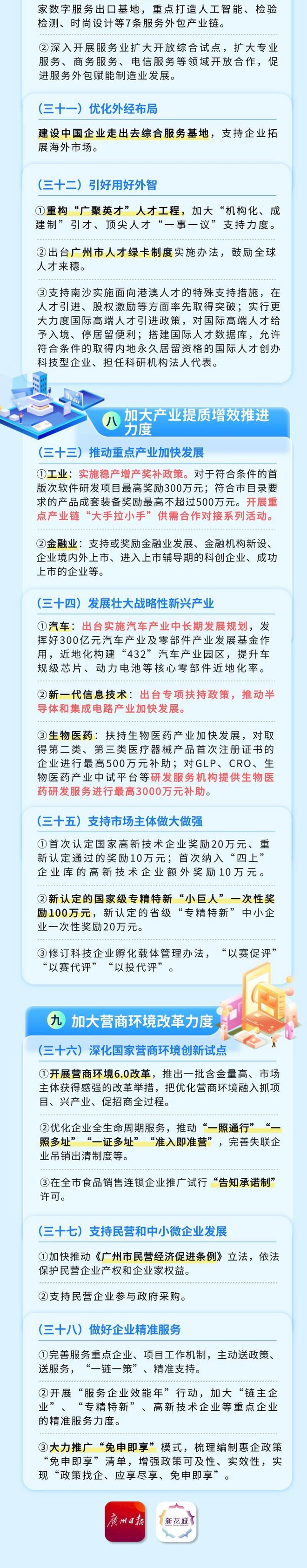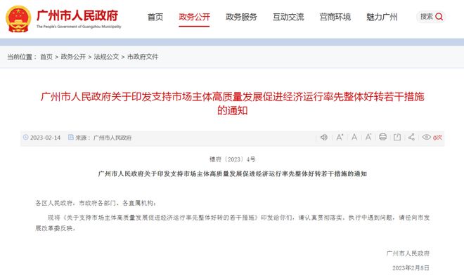 近日,广州市出台《关于支持市场主体高质量发展促进经济运行率先整体好转的若干措施》(以下简称支持市场主体高质量发展“38条”),从服务市场主体、扩大有效需求、推动产业提质增效等三个维度,推出9方面38项具体政策措施。