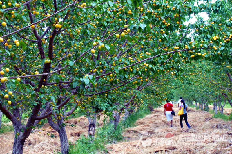2022年6月11日,轮台县策达雅乡萨依巴格村一处杏园里,金黄色的杏子挂满枝头。石榴云/新疆日报记者 杜建辉摄