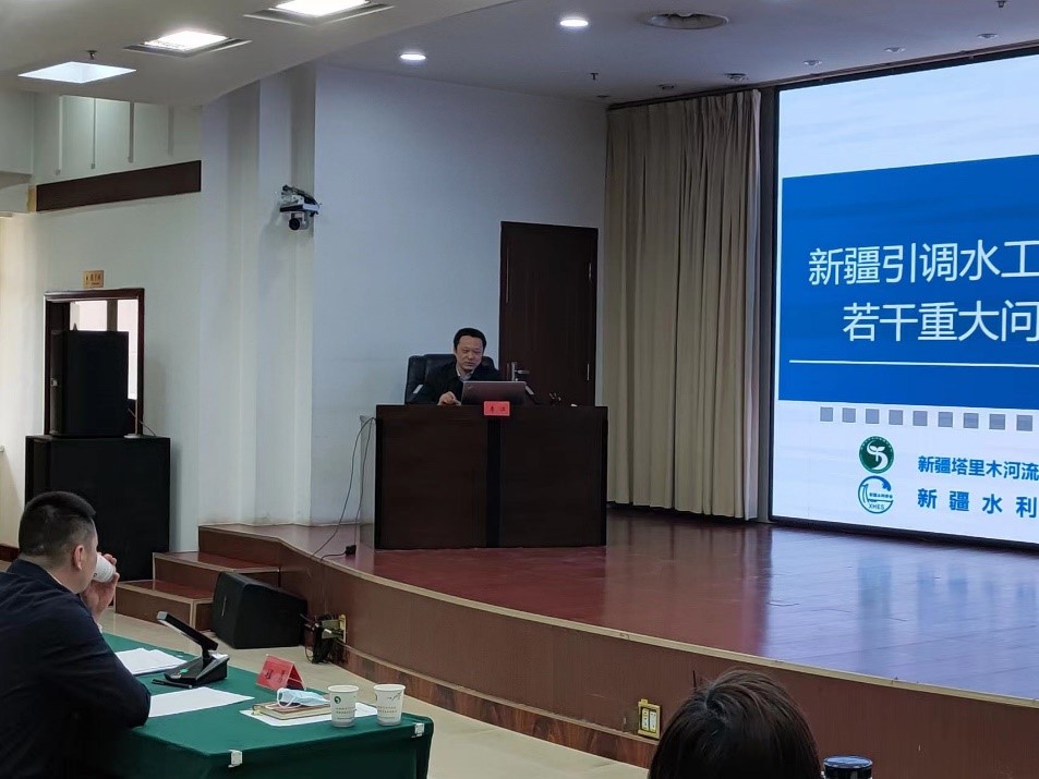 国务院特殊津贴专家、自治区有突出贡献专家、水利部领军人才李江同志做了“新疆引调水工程规划与若干重大问题思考”学术报告,介绍了我国呈现出来的资源性缺水、时空性缺水、污染性缺水、浪费性缺水的水资源短缺问题,根据新疆特有的水资源分布配置和降水特点,指出跨流域调水工程是解决水资源时空分布不均的一条有效途径,是实现水资源合理配置及提高水资源利用率的必要工程措施。讲述了新疆正逐步形成的“四纵四横、南北调配、东西互济”的水资源配置及水网格局,最后就我国引调水工程若干重大问题引出思考。