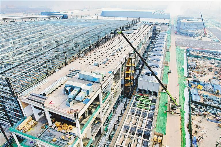 2月21日,宁夏中环光伏材料有限公司50GW(G12)太阳能级单晶硅材料智慧工厂项目工地机声隆隆,呈现一派火热的建设场景。该项目总投资120亿元,项目建成后,将年产50GW(G12)晶棒。目前,该项目已累计完成投资72亿元。 宁夏日报记者 马楠 摄