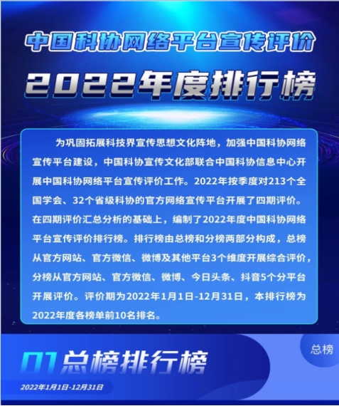 近日,中国科协网络平台宣传评价2022年度排行榜发布,山东省科协在总榜排行榜中排名省级科协第2位。