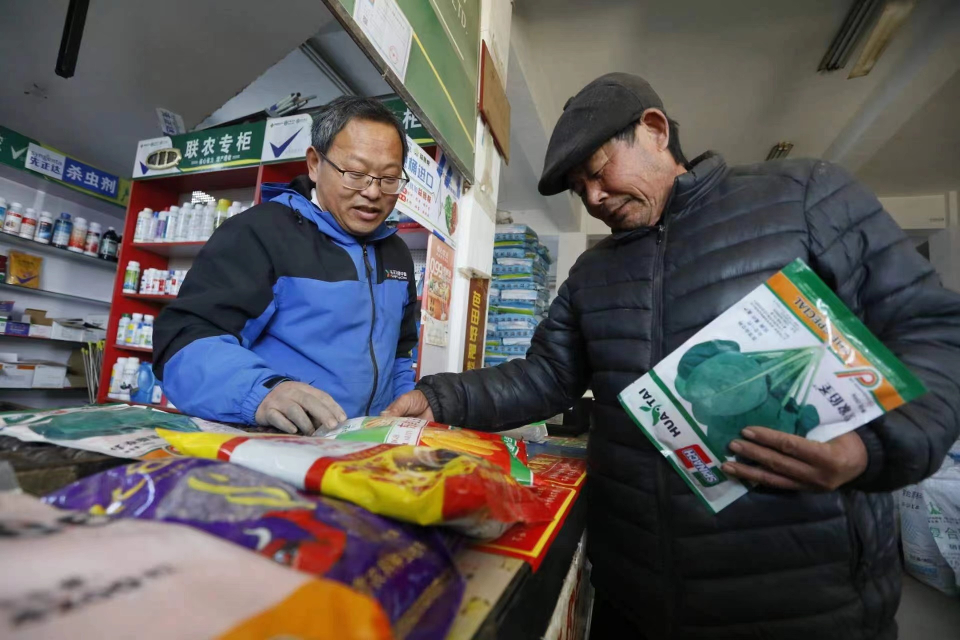 寒意消融,春光明媚,山东省泰安市岱岳区广袤的土地上一派繁忙景象。2月16日,泰安市岱岳区范镇振兴农资经营服务部里,农户络绎不绝,店长戚震忙着向农民介绍不同种子、化肥的特性。