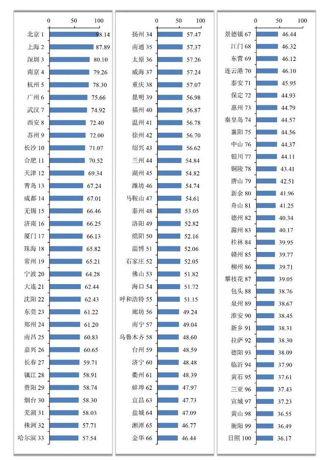 全国城市创新能力百强榜↓↓