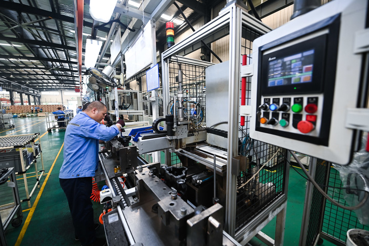 2022年9月27日,在位于浙江省诸暨市店口镇工业区的浙江万安科技股份有限公司数字化车间内,工人在流水线上生产作业。 新华社记者 徐昱 摄