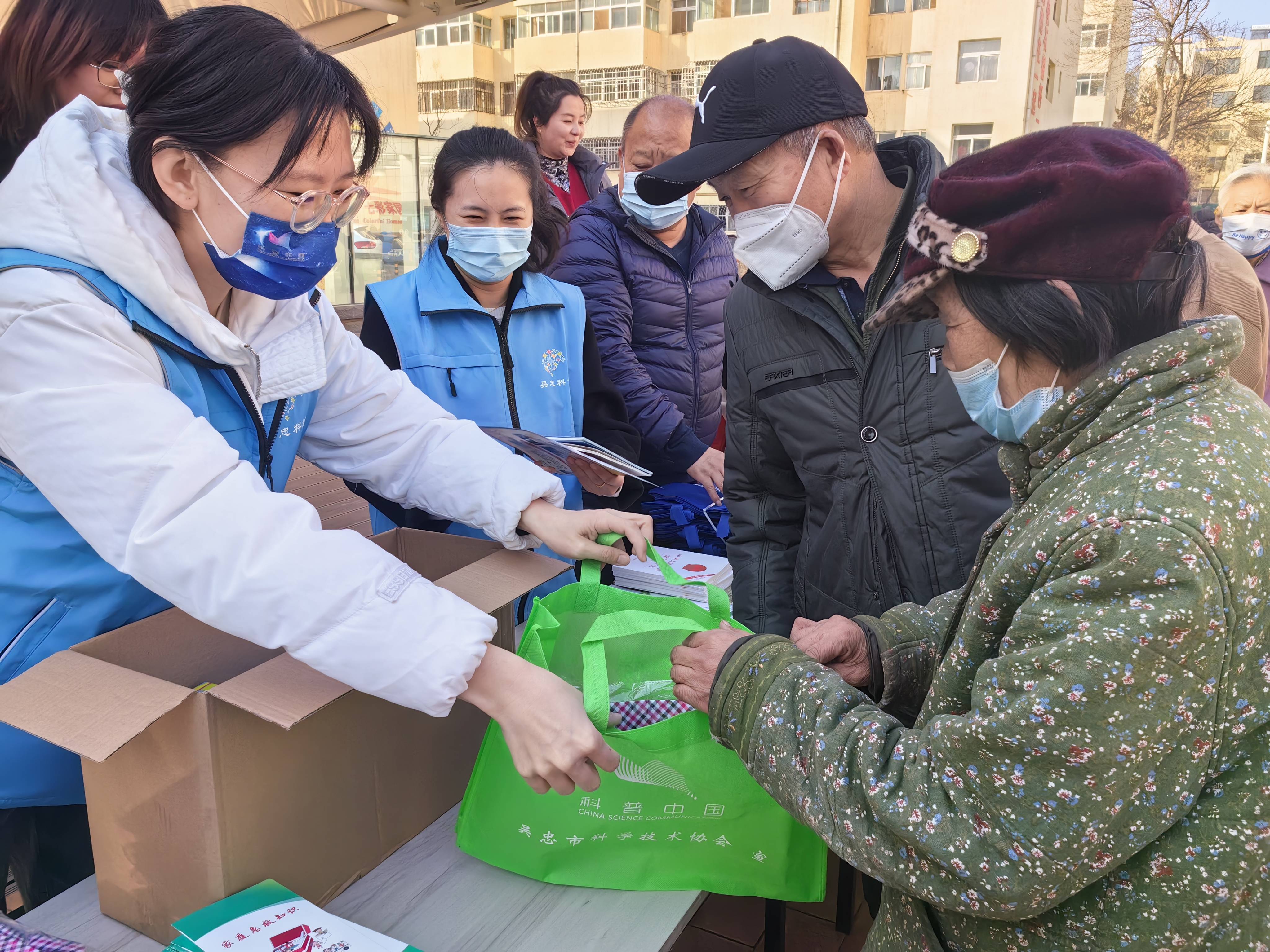 2月23日,在利通区胜利镇朝阳社区 ,随着吴忠市科普大篷车的停靠,吴忠市科学技术协会工作人员张楠和同事们一起将各类宣传资料摆放整齐。附近的居民闻讯而来,张楠和同事一起为大家科普合理膳食、创建文明城市公众安全知识等。