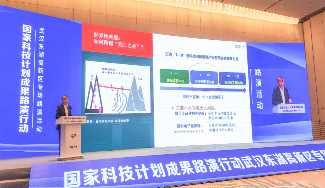 此次国家科技计划成果路演行动在武汉东湖高新区举行专场活动,来自北京大学、清华大学、上海交通大学、北京理工大学、北京邮电大学、西安电子科技大学、中科院微生物所、中科院微电子所、武汉大学、华中科技大学等高校、院所的科研人员和成果转化专家,以及科技部火炬中心,四川、陕西、黑龙江、重庆、深圳、成都、西安等地科技战线相关负责人参会。