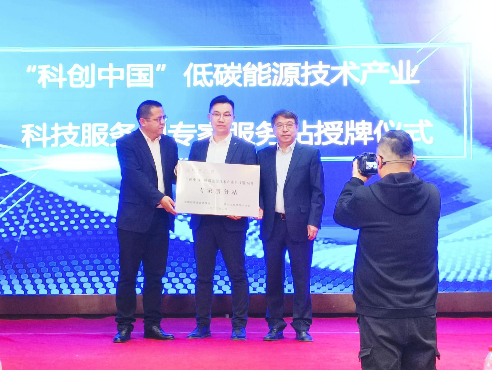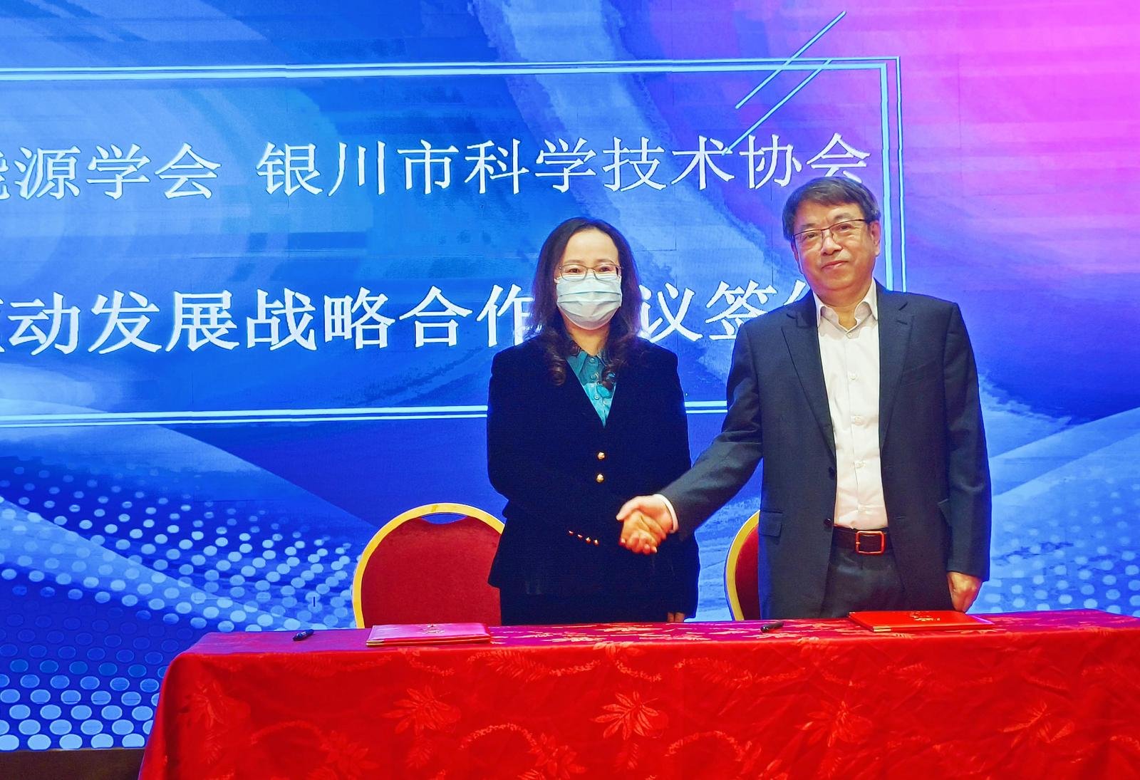 会上,中国可再生能源学会与银川市科协签署服务创新驱动发展战略合作协议,双方联合设立“科创中国”低碳能源技术产业科技服务团专家工作站,并现场为服务站落户企业银川隆基硅材料有限公司授牌。