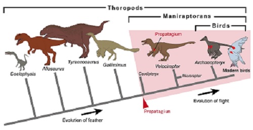 根据这一线索,研究小组发现,前膜很可能是从一群被称为手盗龙类的兽脚类恐龙身上进化出来的。在保存下来的软组织化石中识别出的前膜证实了这一点,这些软组织化石包括有羽毛的窃蛋龙类尾羽龙和有翅膀的驰龙类小盗龙。他们发现的所有标本在该谱系的飞行进化之前就已存在。