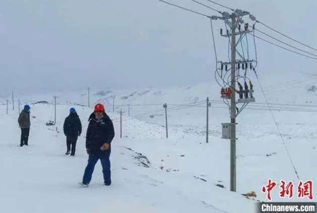 西藏山南错那县电力工作人员巡护线路。 国网西藏电力有限公司 供图