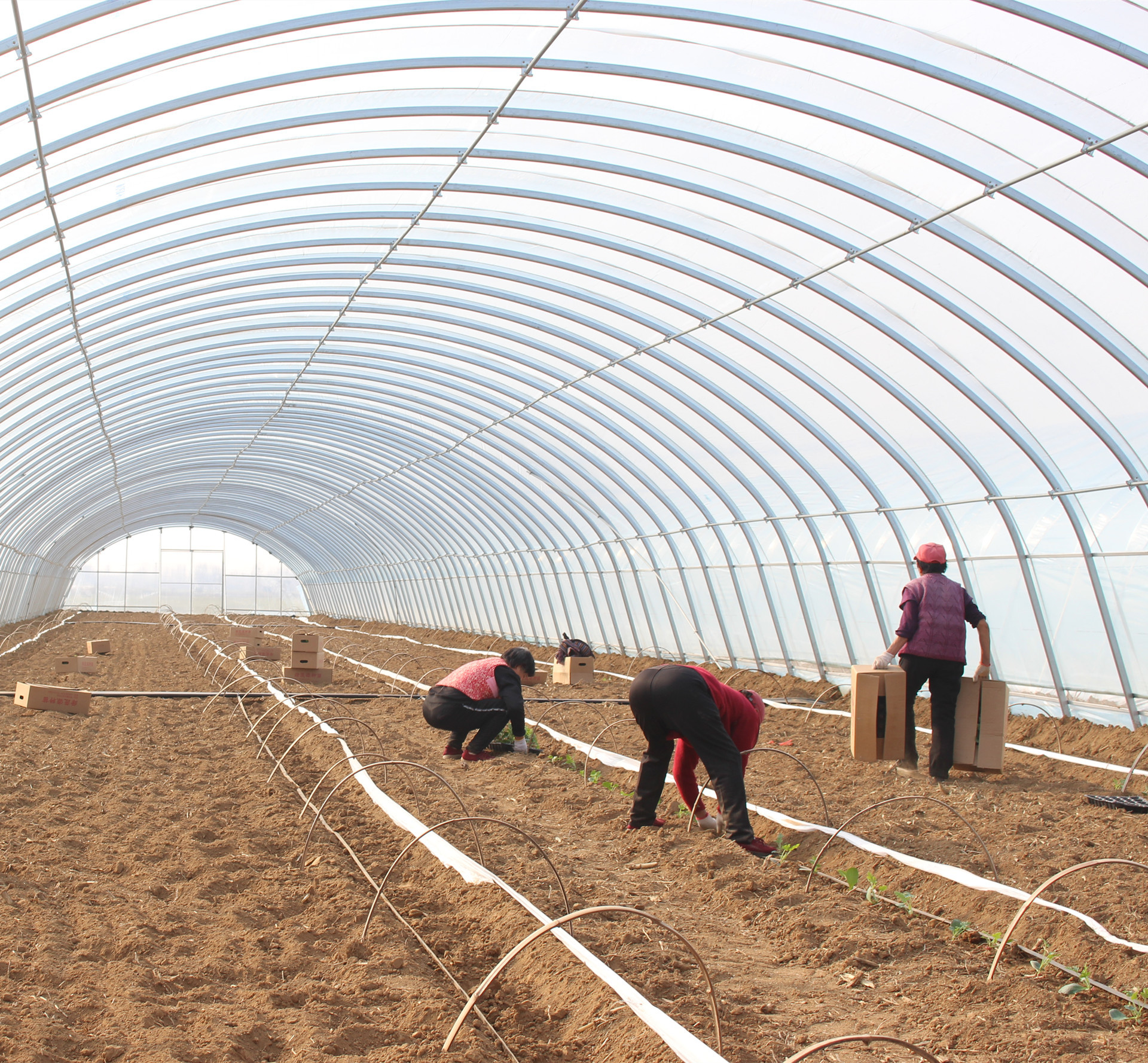 在山东省泰安市东平县沙河站镇董堂村的西瓜大棚里,务工群众分工明确,施底肥、栽种西瓜苗、浇水……有条不紊地忙活着。董堂村今年种植西瓜大棚36个,5月20日左右成熟出售,亩产量能达7000斤,预计收入达60余万元,可带动周边50余人务工就业。