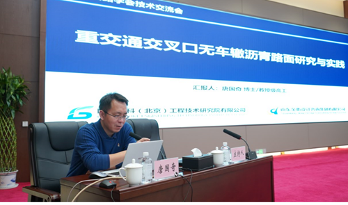 原交通运输部公路科学研究院改性沥青与铺面工程研发部副主任唐国奇博士,作了题为《低碳、高性能干法 SBS 改性沥青技术研究》、《重交通交叉口设计寿命期无车辙沥青路面研究》、《高耐久性排水降噪路面及超薄罩面技术》三个报告,详细阐述了干法SBS改性沥青技术的行业背景、开发历程、应用方案、施工工艺、技术优势、工程案例以及新一代沥青混合料耐久性设计体系,干法SBS系列新材料取得的重大技术成果,并从排水路面性能优势、国内外发展现状、成功实施案例等方面,对排水沥青路面进行了生动讲解,并同与会人员就关心的技术问题进行了探讨和交流。
