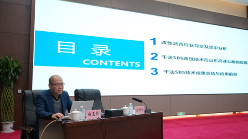 山东省公路桥梁检测中心董事长白玉铎,作了题为《干法SBS改性技术在山东的研究与工程应用》的报告,讲授了该技术在高速公路和普通国省道建设管理中的技术研究与应用成果,分享了试验检测和技术管理工作经验,探讨了路面新技术、新材料的发展趋势与方向。