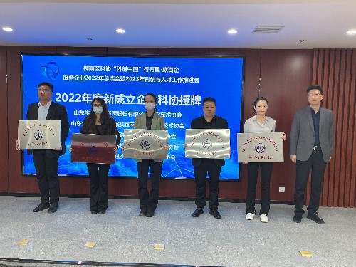 李强为2022年度新成立的5家企业科协授牌,分别为山东生态家园环保股份有限公司科学技术协会、山东金蓝领科技发展集团有限公司科学技术协会、山东数健科技发展有限公司科学技术协会、山东新医路信息科技有限公司科学技术协会、山东杏林与君职业培训学校科学技术协会。
