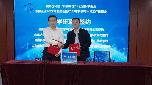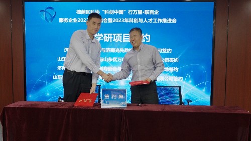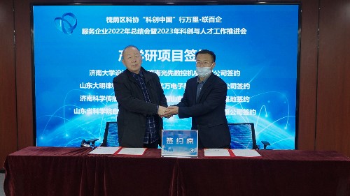 会上还完成了4个产学研项目签约,分别是济南大学设计学院与济南光先数控机械有限公司[设备外观设计专家技术指导]项目签约,山东大明律师事务所与山东优万电子科技有限科技公司[知识产权服务以及未来规划申报业务指导]项目签约,济南科学传播协会科创专委会与山东科创(槐荫)基地[科创服务园区规划指导]项目签约,山东省科学院自动化研究所与济南利江自动化设备有限公司[玻璃深加工企业仓储理片MES系统的研发]项目签约。