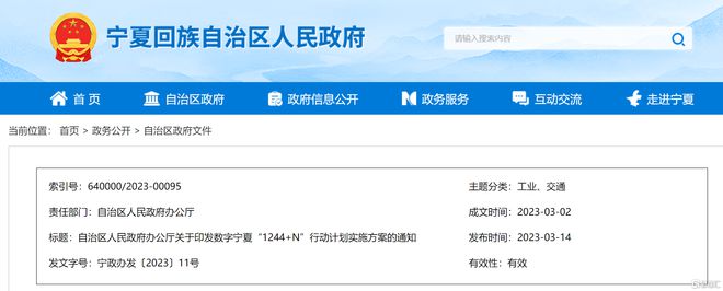 宁夏发布《数字宁夏“1244+N”行动计划实施方案》,部署13项重点任务